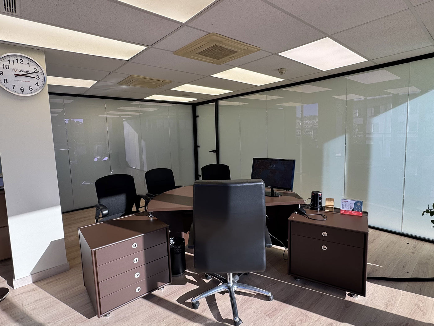 En Lamina Protect estamos orgullosos de haber realizado la instalación de lámina PDLC en el despacho del CEO de Mussap Seguros, situado en el corazón de Barcelona, concretamente en la emblemática Via Laietana. Este despacho destaca no solo por su ubicación privilegiada, sino también por ofrecer impresionantes vistas panorámicas de toda la ciudad condal.